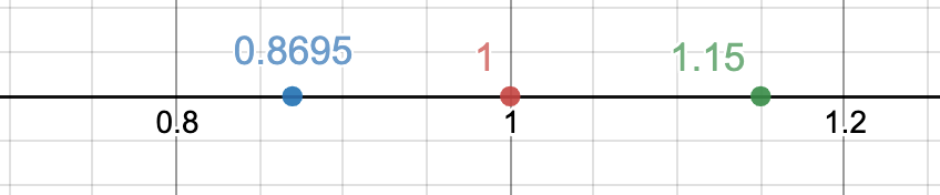 We started with the value 1, and incremented to 1.15, by logic, to get back to where we started, we’d only have to increment the other way to 0.85.