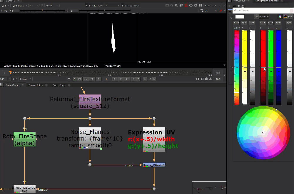 With a UV map ready to go, let’s create a roto node, connect it to the reformat node, and draw a shape we’d like our flame texture to take on.