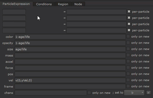 From here on, we’ll use particle expressions to control the size, color/opacity, and velocity of our particles.