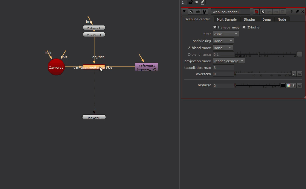 Finally, drop a ScanlineRender and hook up all the inputs.