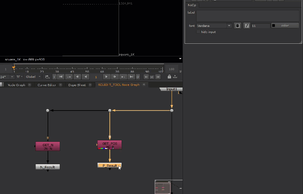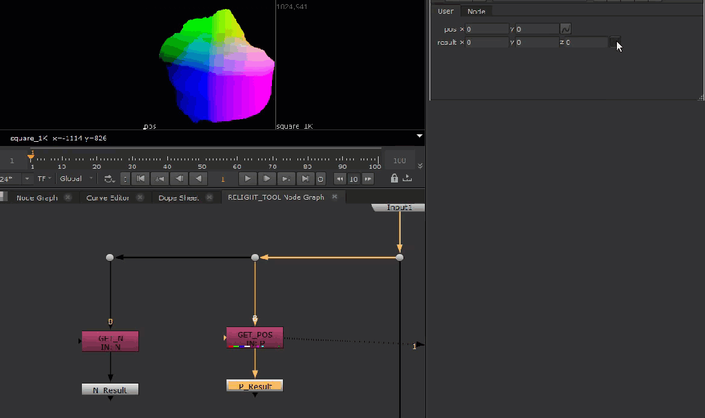 We should also link the “pos” knob of our “N_Result” node to the “pos” knob on our “P_Result“, to ensure that we’re always sampling position and normal at the same location.
