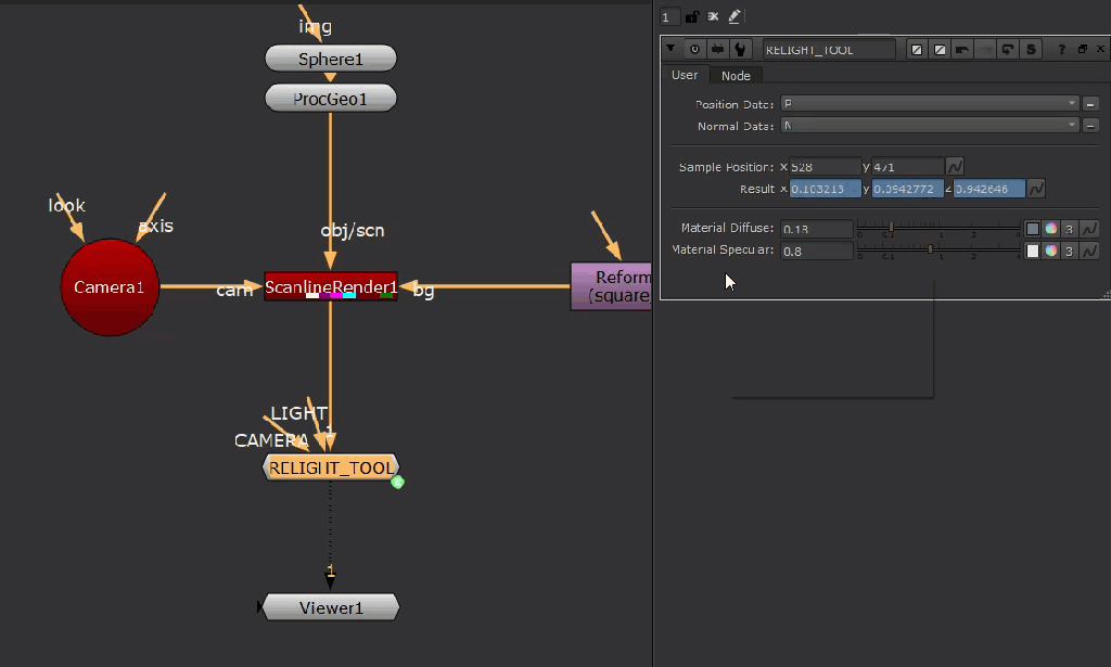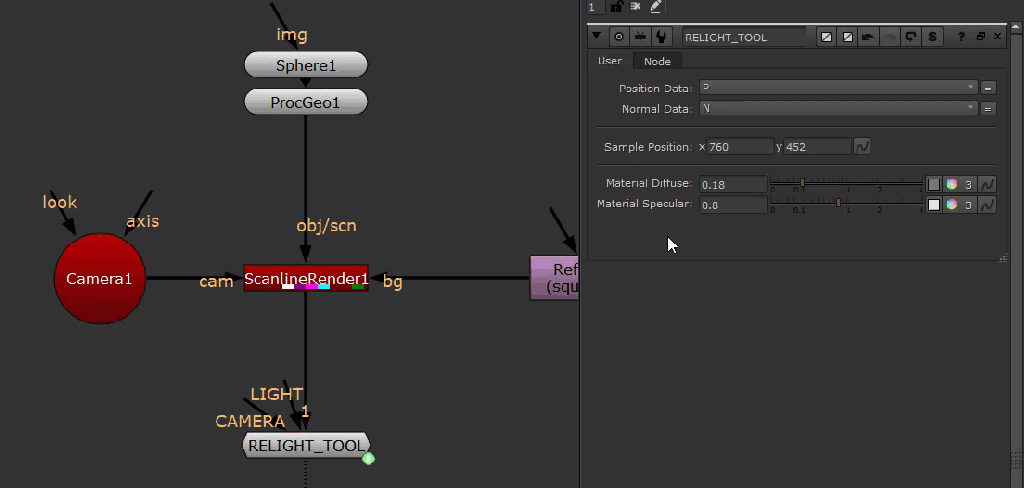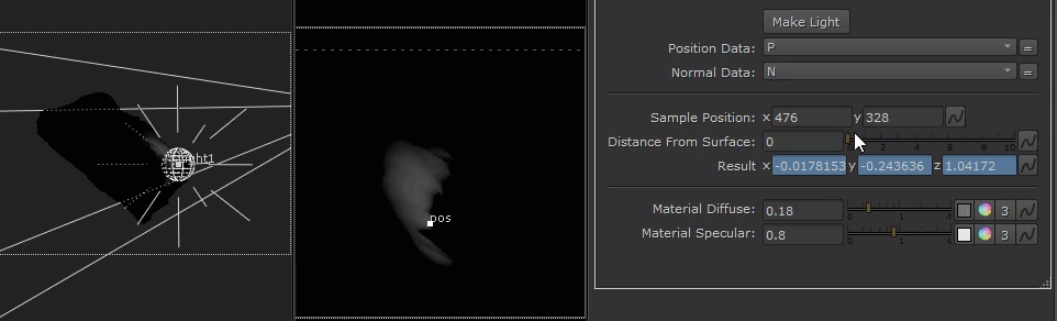 We’ll use the 3D position knob to store the sampled data to feed to our light for relighting.